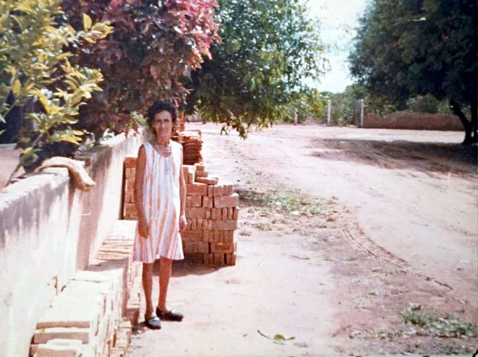 Foto: Baú da Folha Caipira/FC Sentinela – A queridíssima de todos Ana do Beijo, mãe do Doquinha e da Janete Chessa, do lado de fora da rua onde sempre morou, até partir