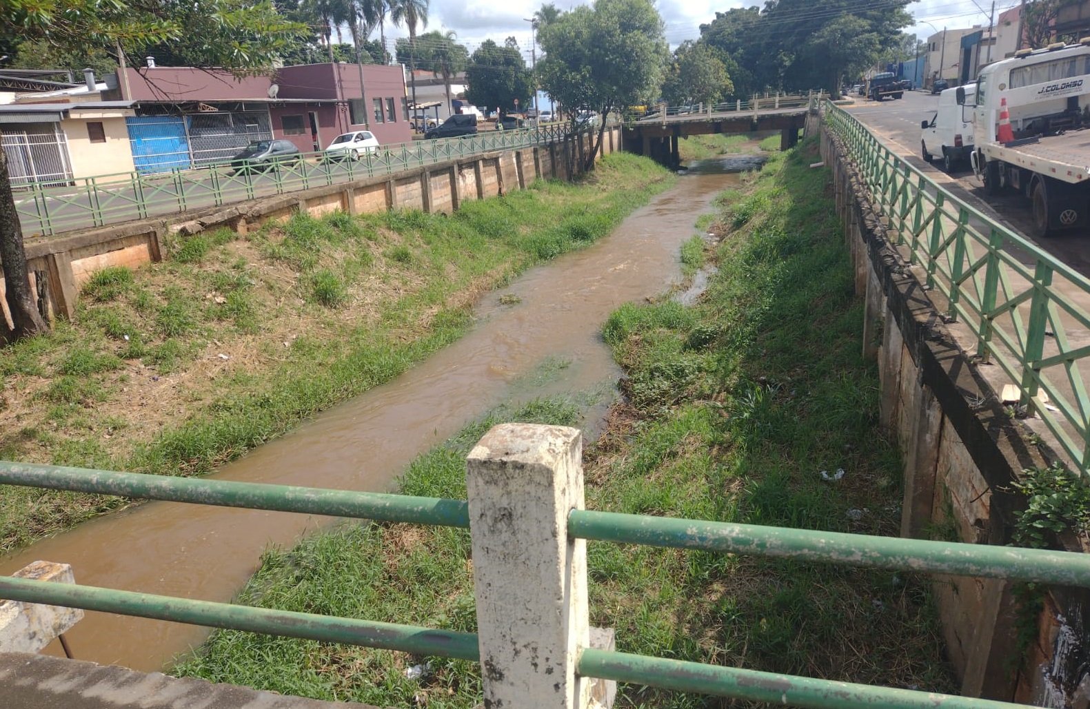 Vista do ribeirão São Domingos, a partir da rua XV de Novembro, sentido rua Carlos Gomes, no dia 10 de abril – após chuvas fracas, seu nível se manteve baixo, aquém do esperado para esta época do ano