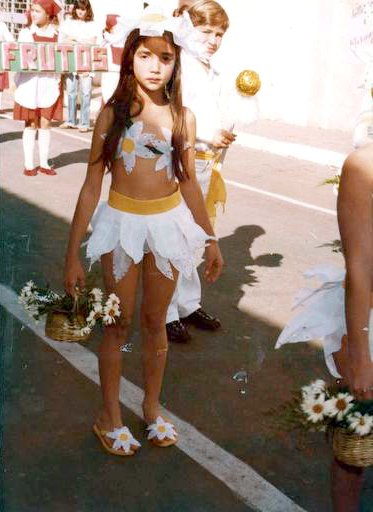 Primavera – Estamos num dia ensolarado de 1979, quando a festa que celebra a estação mais bonita do ano tem seu desfile. Na imagem, a bela Ana Paula Vicente Ferreira; logo atrás, Hédio Silva